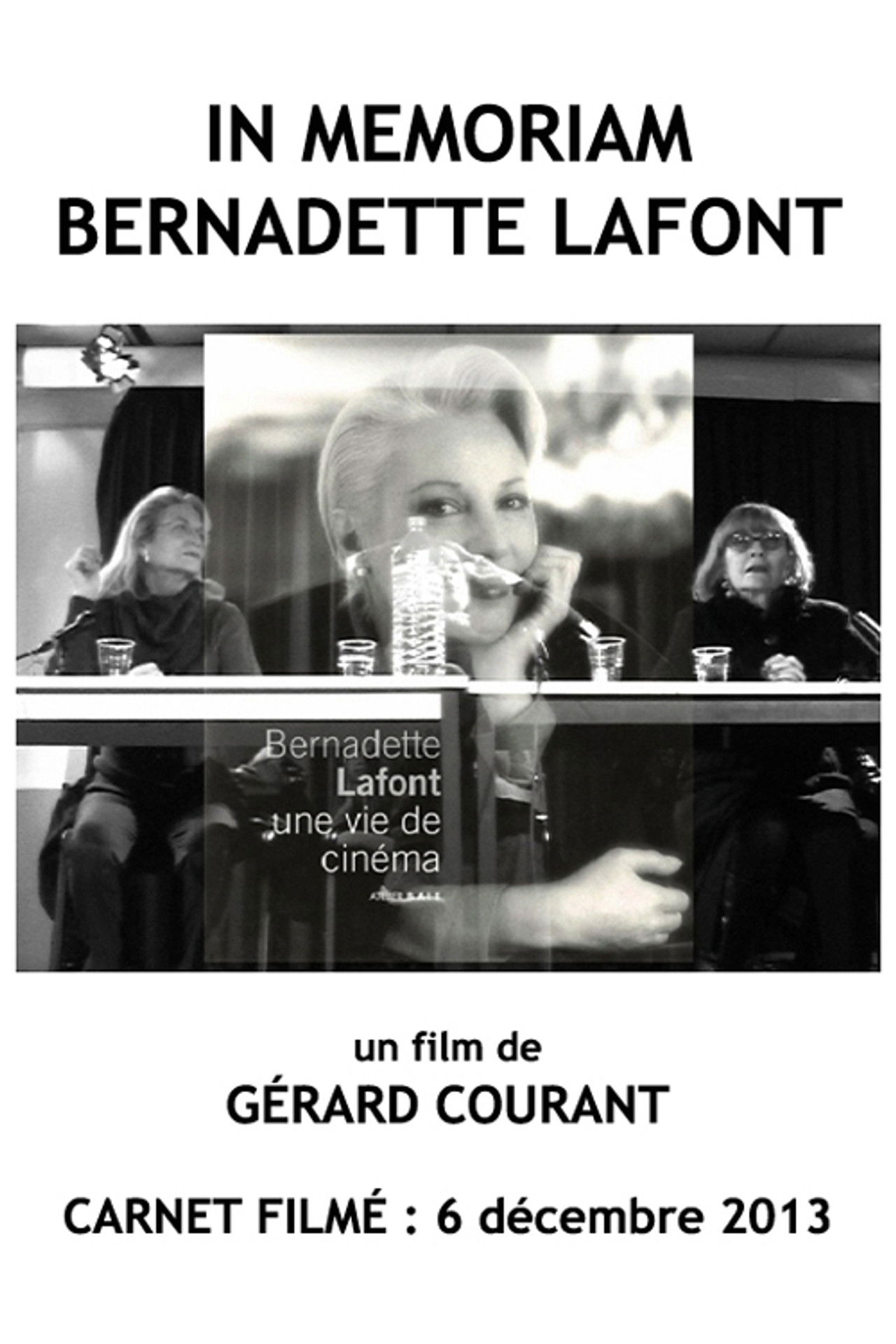 On 6 December 2013, a public exhibition dedicated to her memory, Bernadette Lafont l'exposition hommage, was held in Paris. Actors Stéphane Audran, Guillaume Gouix and Alexandra Stewart read some extracts of Bernard Bastide's new biography Bernadette Lafont, une vie de cinéma, including some original letters written by Bernadette. The event was filmed by Gérard Courant and aired as an episode of Carnets filmés, In Memoriam Bernadette Lafont.